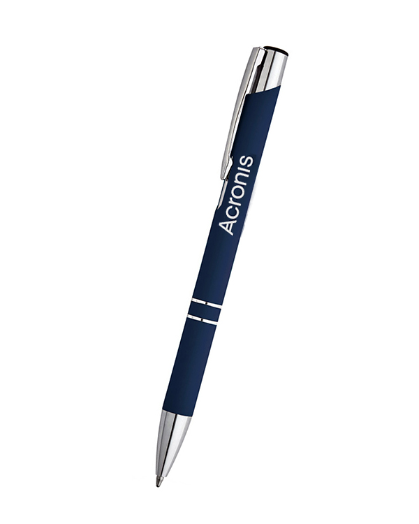 Metal pen with laser engraved Acronis logo. Blue ink.