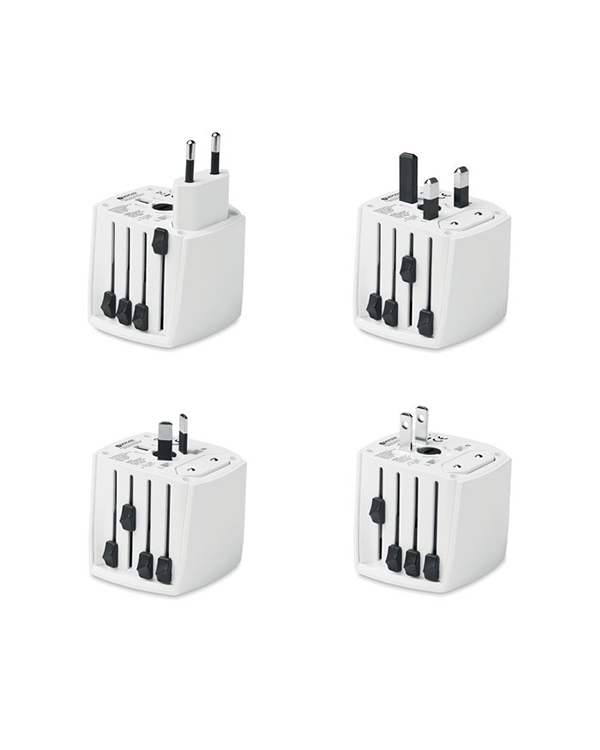 Universal travel adapter. Receptacles for Europe, USA/Japan, Australia/China.   2-pole, unearthed. Fulfils all international security-relevant standards and norms. Even child safe.