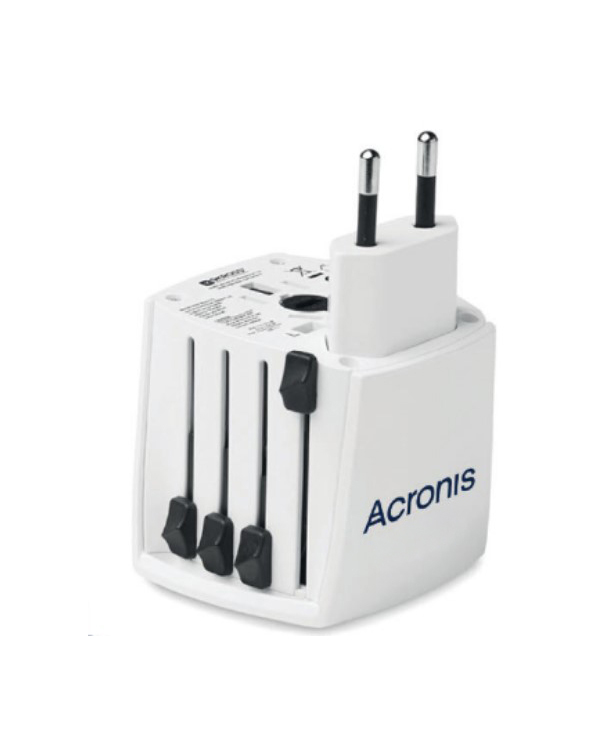 Universal travel adapter. Receptacles for Europe, USA/Japan, Australia/China.